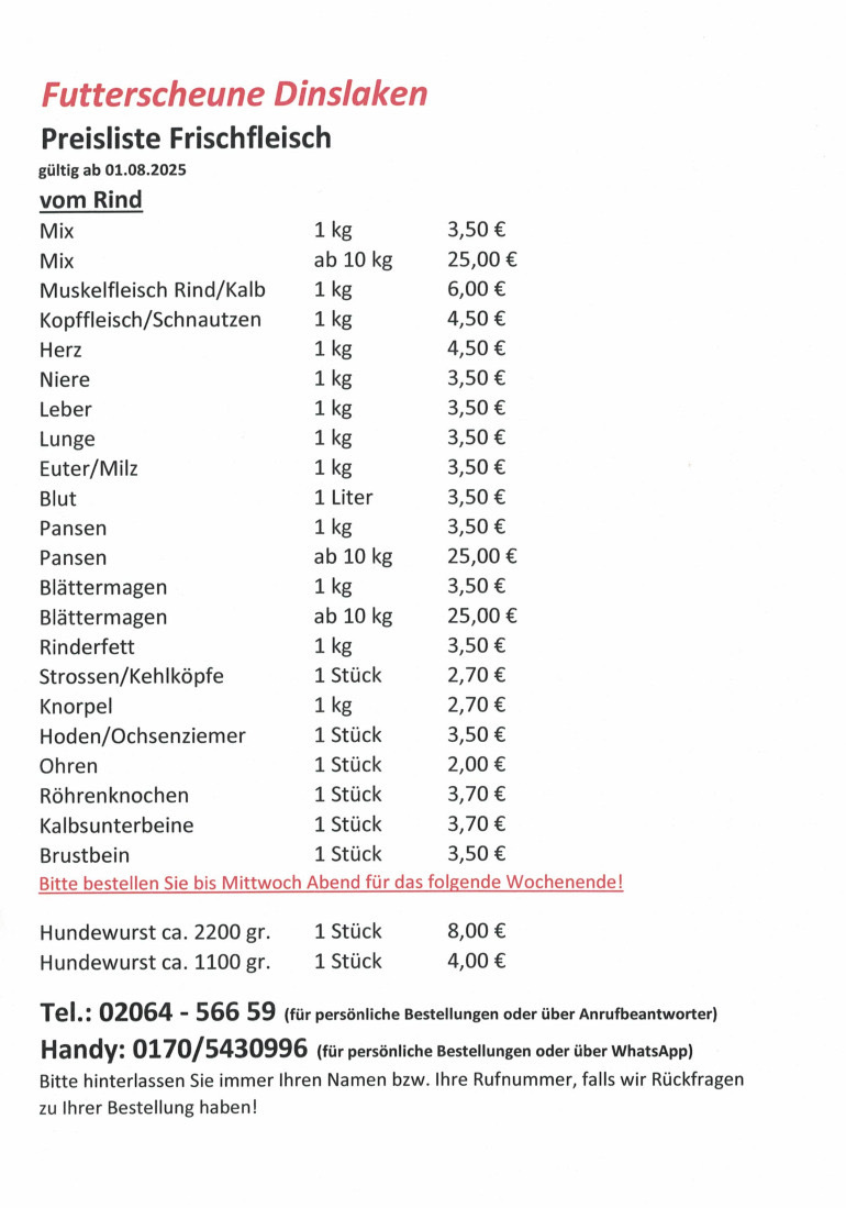 Frisches Hundefutter (BARF) aus eigener Produktion